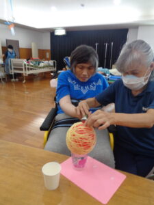 在宅サービス支援部では、秋の夜長シーズンを楽しむためのアイテムとして「風船ランプシェード作り」をしました。