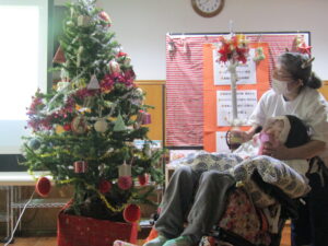 クリスマス会当日に皆でツリーが並び「繋ぐクリスマス」の完成しました!!